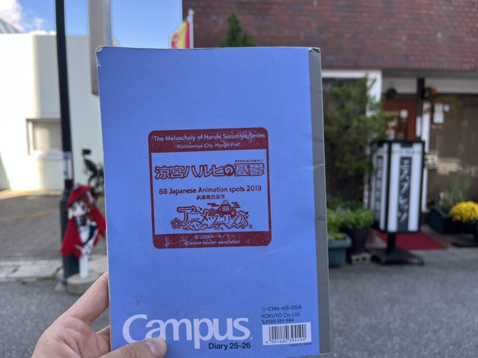 食べ終わって会計を済ませたら、ノートの裏にアニメツーリズム認定の御朱印を押して店を出ました。