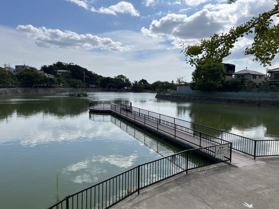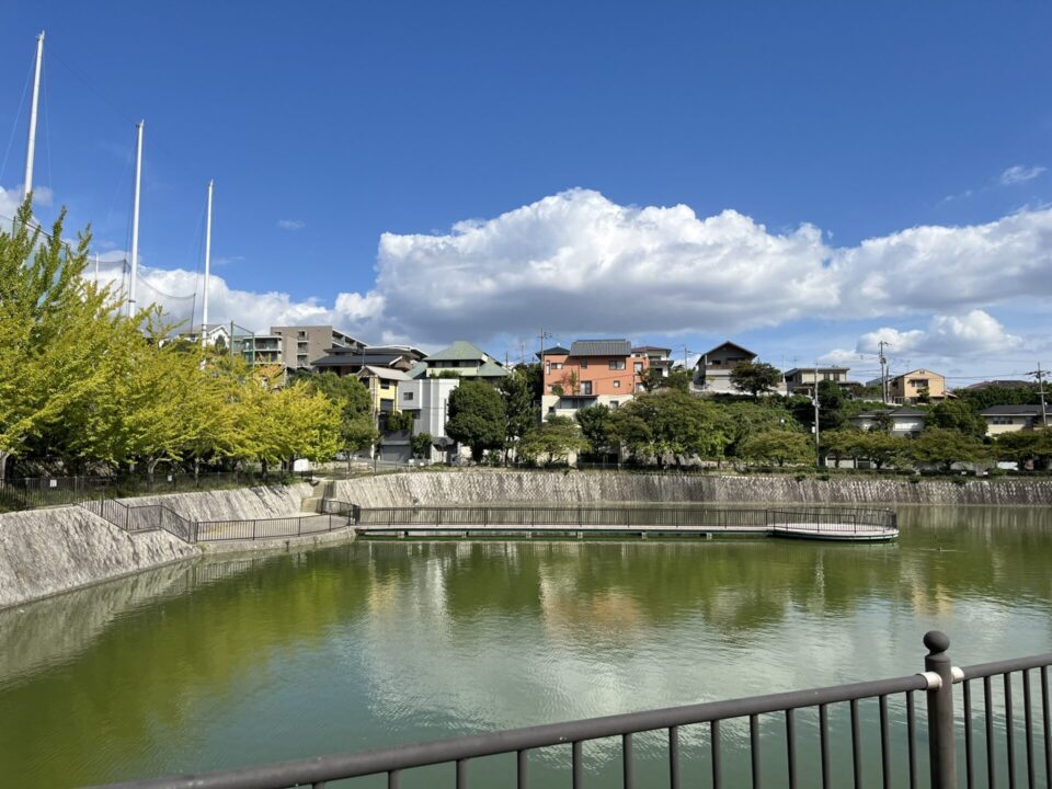 廣田神社と同じくSOS団が映画撮影で訪れ、撮影中にみくるちゃんが落とされた池。ファンの間で”みくる池”と呼ばれる「新池」は、廣田神社を出て徒歩1分のところにあります。