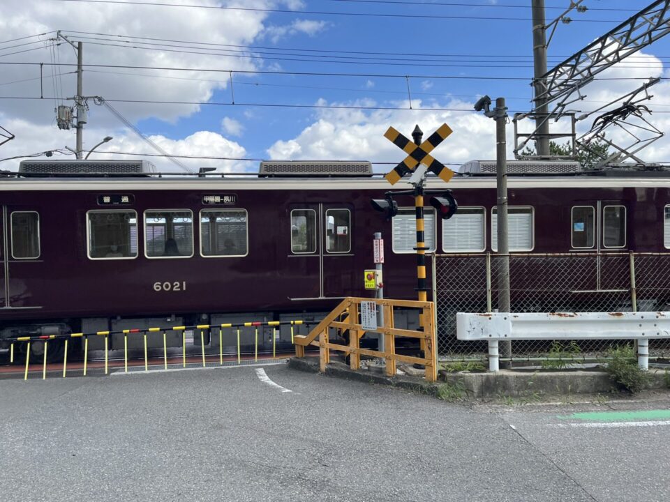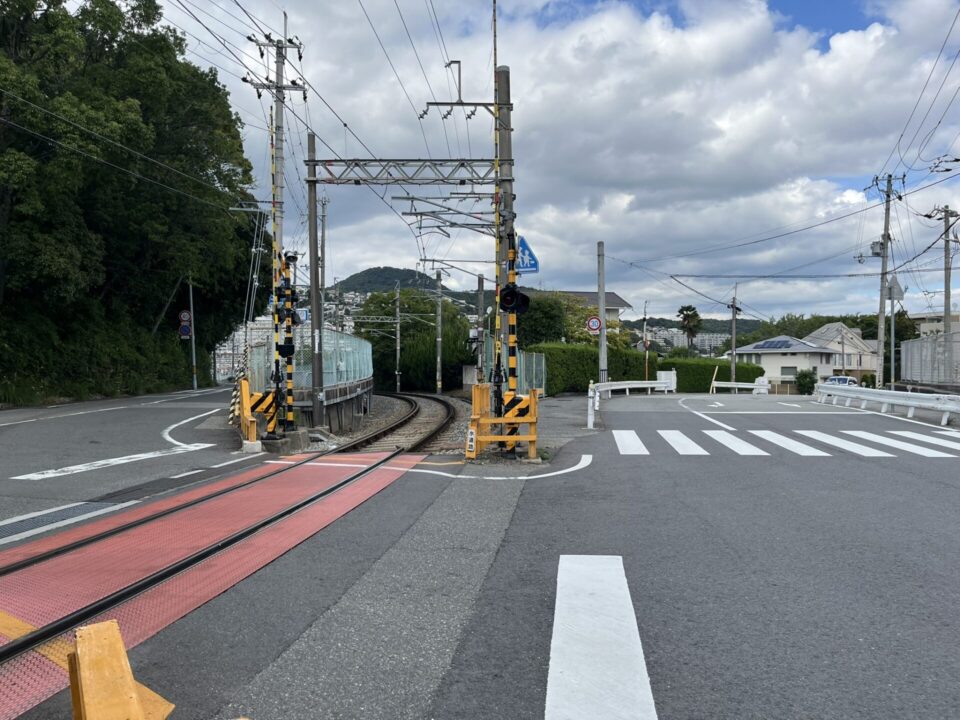 新池からカブで約5分走った先にある、阪急甲陽線の甲陽園駅に最も近い踏切。