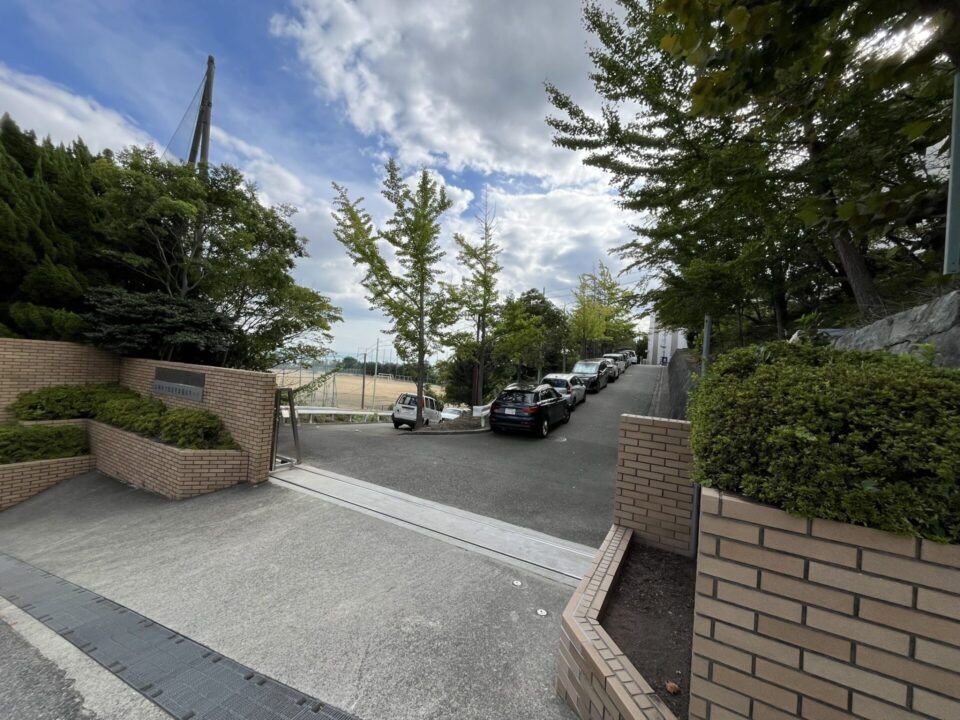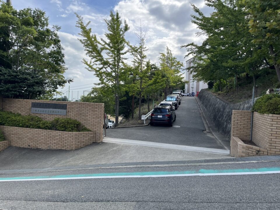 阪急甲陽園駅からカブで走ること約10分。SOS団が通う”北高”のモデルとなった学校で、聖地巡礼スポットの中で最も訪れたかった「兵庫県立西宮苦楽園高校」に到着しました。