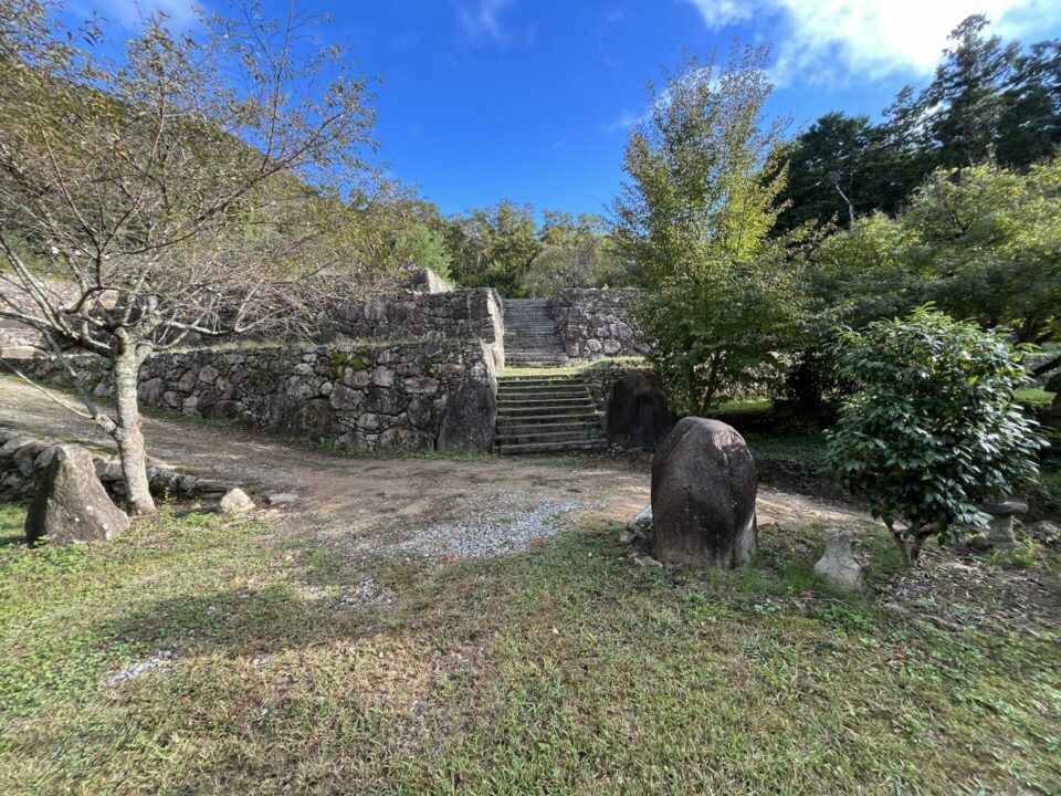- 城跡のような石垣の上は、管理人さんのおじいさんの趣味で作られたもの