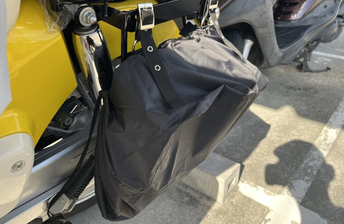 カブにつけているサイドバッグサポートに差し込める形状になっています。